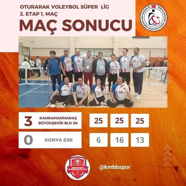 Oturarak Voleybol Süper Ligi 2. Etap heyecanı Konya deplasmanında başladı. Ligin zirve adaylarından Kahramanmaraş Büyükşehir Belediye Spor Kulübü, etabın ilk karşılaşmasında Konya Engelliler Spor Kulübü ile kozlarını paylaştı. Maçın ilk düdüğünden itibaren oyuna ağırlığını koyan temsilcimiz, rakibine set dahi vermeden 3-0’lık net bir skorla galibiyete uzandı.
