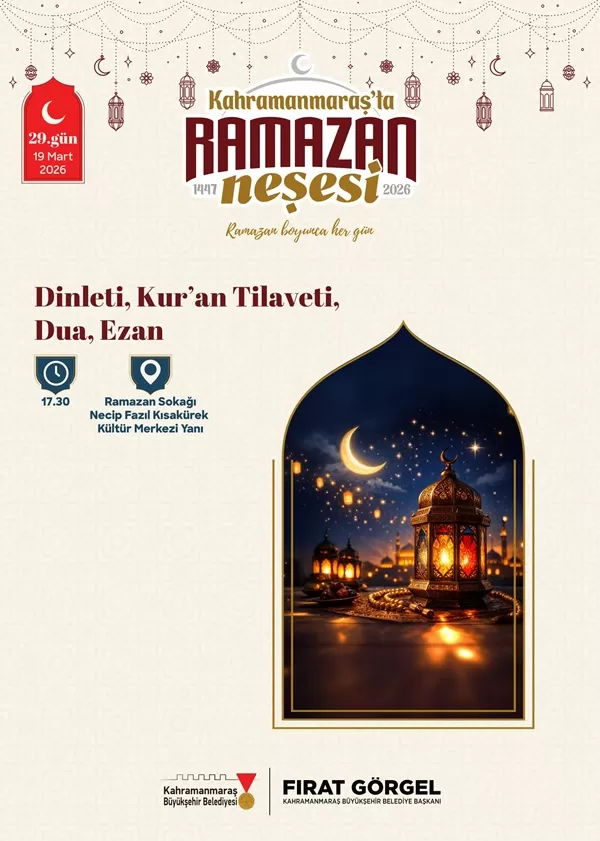 Kahramanmaraş Büyükşehir Belediyesi, 2026 yılı Ramazan ayının manevi iklimini şehre yaymak ve vatandaşları bir araya getirmek amacıyla kapsamlı bir etkinlik programı hazırladı. Necip Fazıl Kısakürek Kültür Merkezi yanındaki Ramazan Sokağı, ay boyunca kültür, sanat ve maneviyatın kalbinin attığı merkez haline gelecek.