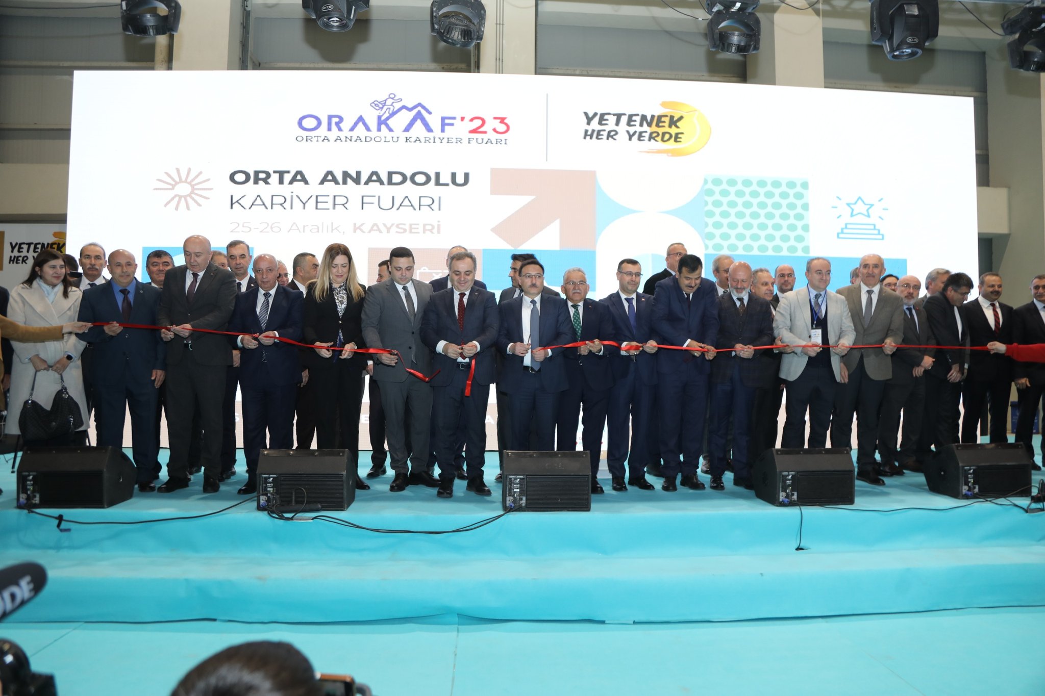 Cumhurbaşkanlığı İnsan Kaynakları Ofisinin himaye ve koordinasyonunda Erciyes Üniversitesi ev sahipliğinde gerçekleştirilen ve Kahramanmaraş Sütçü İmam Üniversitesinin (KSÜ) de paydaşı olduğu Orta Anadolu Kariyer Fuarı (ORAKAF’23), düzenlenen törenle ziyaretçilere açıldı.