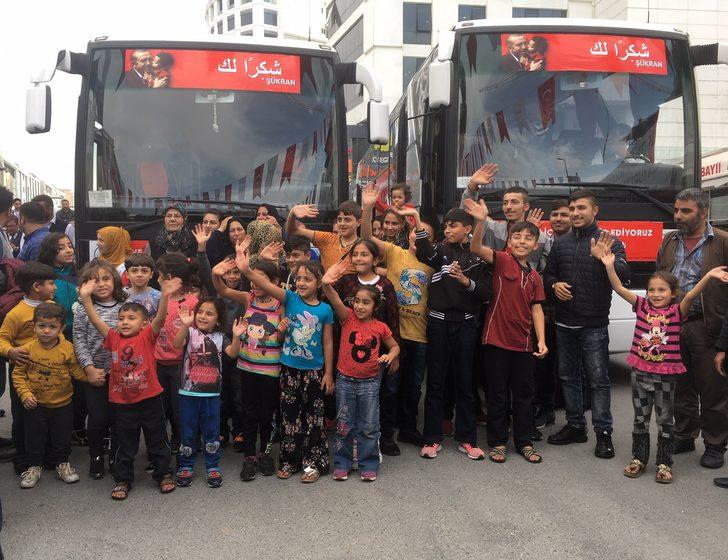 Yıllar önce ülkelerindeki iç savaştan kaçarak Türkiye’ye sığınan Suriyeli vatandaşlardan 97’si yeniden memleketlerinin yolunu tuttu. Aralarında çok sayıda çocuğun bulunduğu grup Esenyurt’tan otobüslerle Suriye’ye uğurlandı. Son kafileyle birlikte Suriye’ye giden vatandaşların sayısının 3 bin 500 civarı olduğunu söyleyen Esenyurt Belediye Başkanı Ali Murat Alatepe, “Önümüzdeki hafta 100 kişilik bir kafile daha göndereceğiz. Önümüzdeki aylarda ise 6 bin Suriyeliyi ülkelerine uğurlayacağız” dedi.